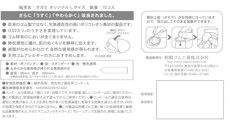 サガミオリジナル002 Lサイズは、ただのコンドームじゃない。